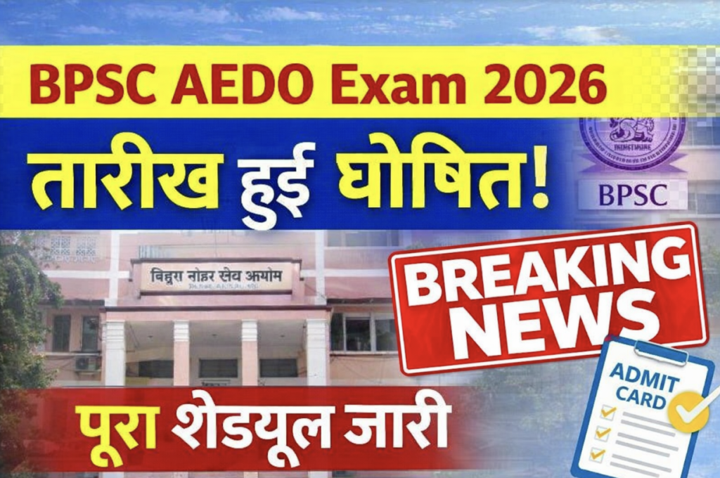 बिहार लोक सेवा आयोग (BPSC) ने सहायक शिक्षा विकास पदाधिकारी (Assistant Education Development Officer – AEDO) भर्ती परीक्षा 2025 के लिए लिखित परीक्षा कार्यक्रम आधिकारिक रूप से जारी कर दिया है। आयोग द्वारा जारी परीक्षा कैलेंडर के अनुसार यह परीक्षा अप्रैल 2026 में राज्य के विभिन्न जिला मुख्यालयों में निर्धारित तिथियों पर आयोजित की जाएगी। इस घोषणा के बाद परीक्षा की तैयारी कर रहे हजारों अभ्यर्थियों को बड़ी राहत मिली है, क्योंकि अब उन्हें अपनी तैयारी को अंतिम रूप देने के लिए स्पष्ट समयसीमा मिल गई है।
